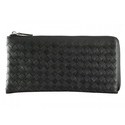 Bottega Veneta Intrecciato Nappa bőr cipzáras pénztárca körül fekete