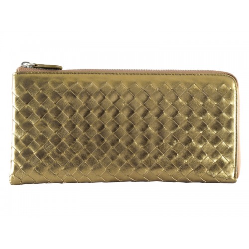 Bottega Veneta Intrecciato Nappa bőr cipzár a pénztárca körül bronz