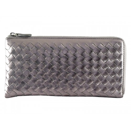 Bottega Veneta Intrecciato Nappa bőr cipzáras pénztárca körül szürke szál