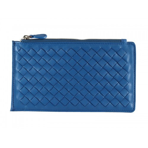 Bottega Veneta Intrecciato Nappa bőr cipzáras felső pénztárca kék