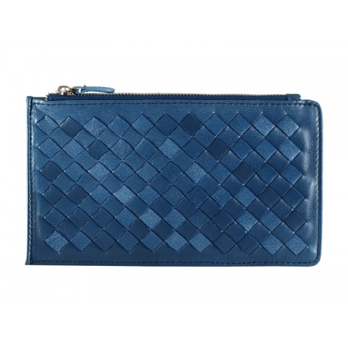 Bottega Veneta Intrecciato Nappa bőr cipzáras felső pénztárca sötétkék