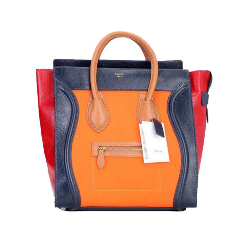 Celine nagyméretű bőrönd táska borjúbőrből, kék/narancssárga vászonból