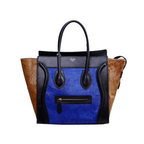Celine bőrönd közepes méretű táska fekete/pónihajkék borjúbőrből