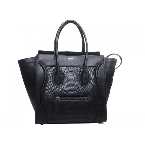 Celine bőrönd közepes méretű táska fekete borjúbőrből és fekete kígyóbőrből