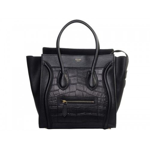 Celine Közepes Táska Borjúbőrből Fekete Krokodilbőrből