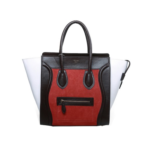 Celine bőrönd közepes méretű táska borjúbőrből, csokoládé/fehér/narancssárga velúr