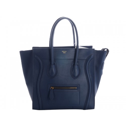 Celine bőrönd közepes méretű táska borjúbőrből sötétkék színben