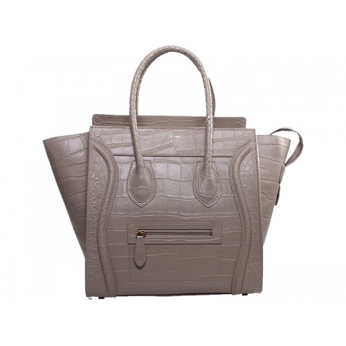 Celine közepes méretű bőrtáska krokodilbőrből, khaki színben
