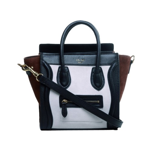 Celine bőrönd mini táska borjúbőrből, fekete/fehér-barna színben