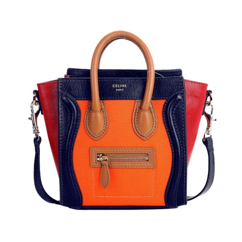 Celine Luggage Mini Bevásárlótáska Borjúbőr Kék/Vászon Narancssárga