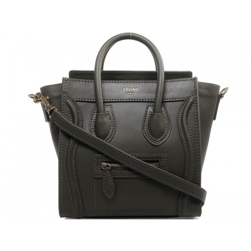 Celine bőr mini táska borjúbőrből, zöldfekete színben