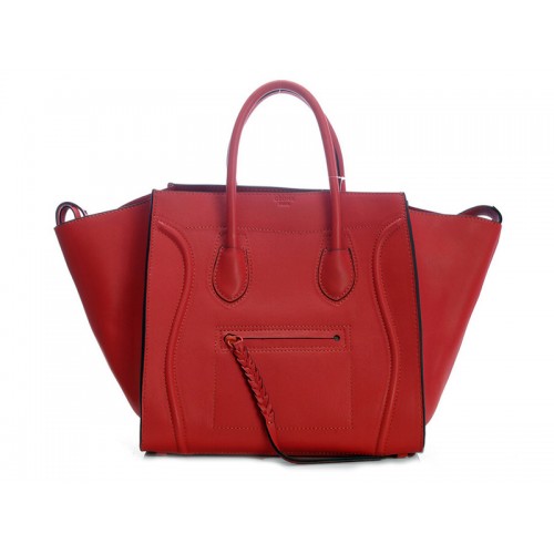 Celine Luggage Phantom Négyzet alakú Táska Cseresznye Színben Fekete Díszítéssel