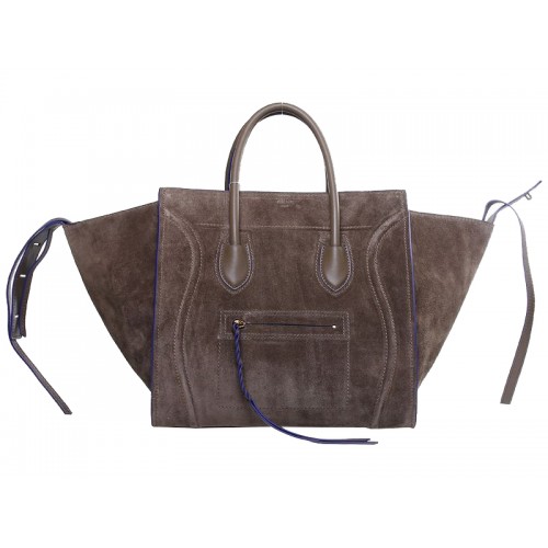 Celine Poggyász Fantom Négyzet alakú Táska Velúr Bőr Khaki Színben Kék Színben