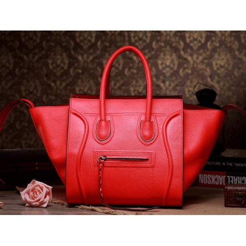 Celine Poggyász Phantom Négyzet alakú Táska Togo Bőr Narancssárga Piros