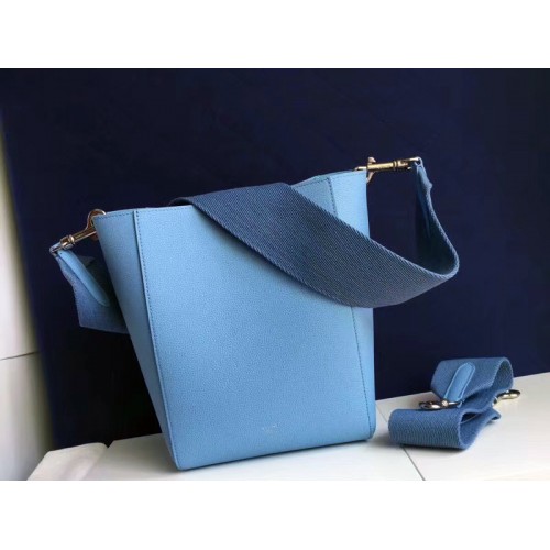 Celine Sangle Kis Vödör Táska Puha Szemcsés Borjúbőr Kék Színben
