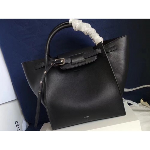 Celine Kis Nagy Táska Hosszú Pánttal, Puha Szemcsés Borjúbőrből, Fekete