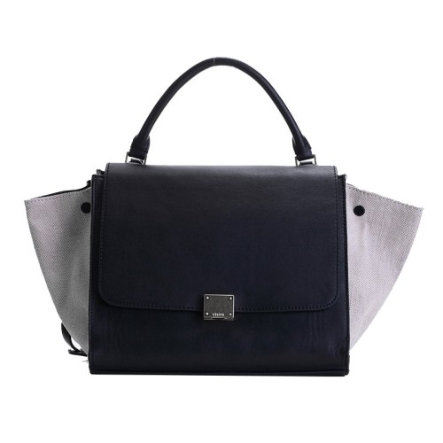 Celine Trapéz Válltáska Borjúbőr Fekete/Krém Vászon