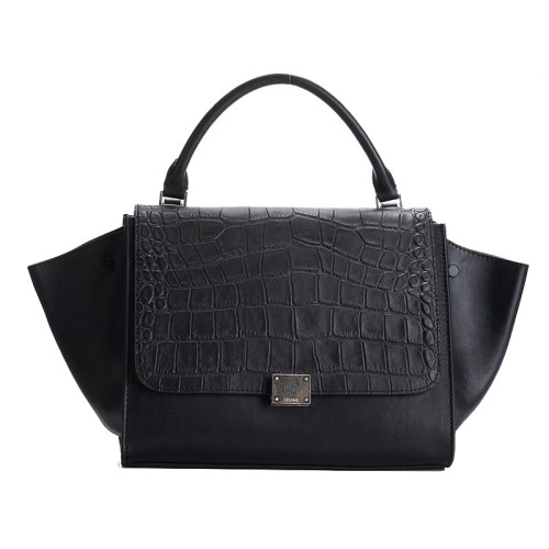 Celine Trapéz Válltáska Borjúbőr Krokodilbőr / Fekete