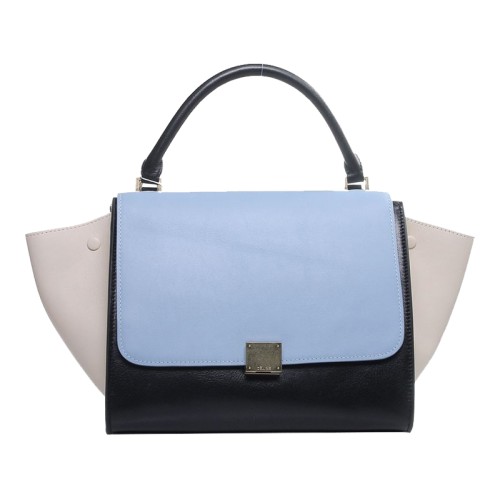 Celine Trapéz Válltáska Többszínű Borjúbőr Világoskék/Fekete/Krém