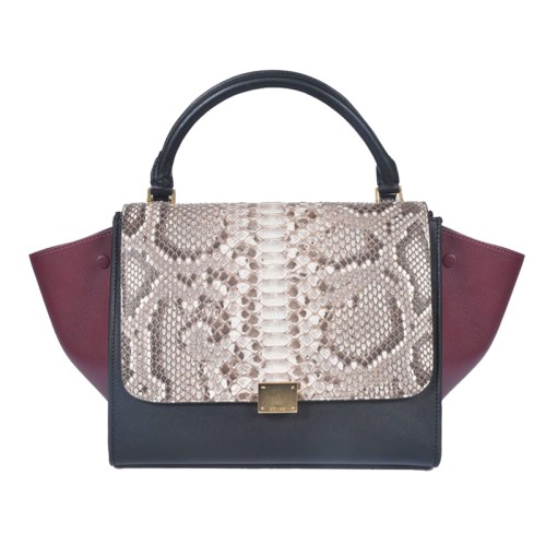 • Celine Trapéz Válltáska Python Bőr Krém/Fekete/Borszínű