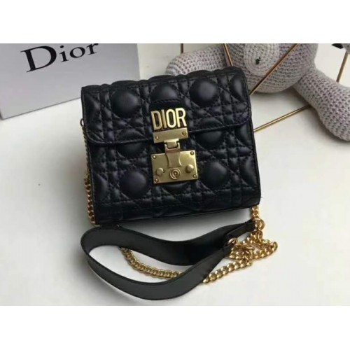 Dioraddict csappantyús táska fekete színben Kanül báránybőr, aláíráskapocs és levehető lánc öregített arany tónusú fémből.