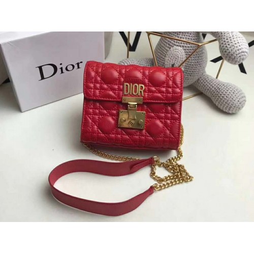 Dioraddict csappantyús táska piros kanül báránybőrből, aláíráskapocs és levehető lánc érlelt arany tónusú fémből.
