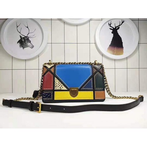 Dior Diorama borjúbőr táska patchwork többszínű kék színben