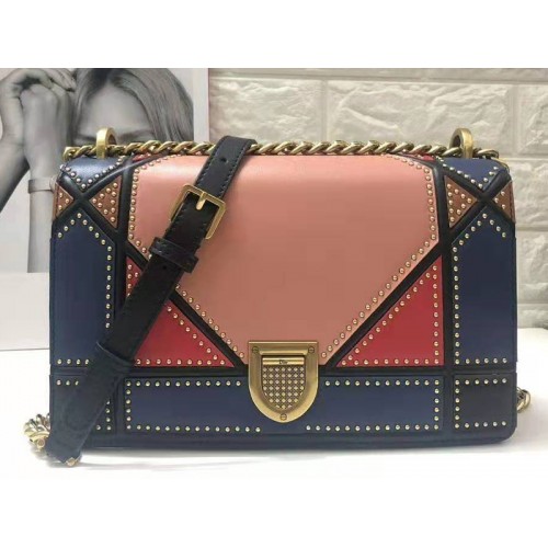 Dioráma táska báránybőr patchworkben, többszínű szegecses nagy 'Cannage' motívum.