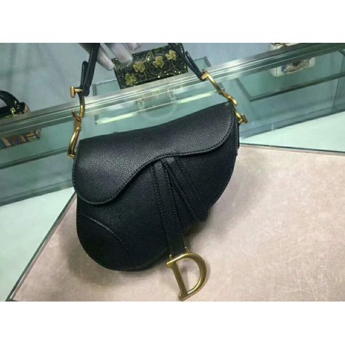 Dior Mini Nyereg Borjúbőr Táska Arany Hardverekkel Fekete M0447s