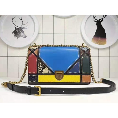 Dior Kis Dioráma Borjúbőr Táska Foltvarrásban Többszínű Kék Színben