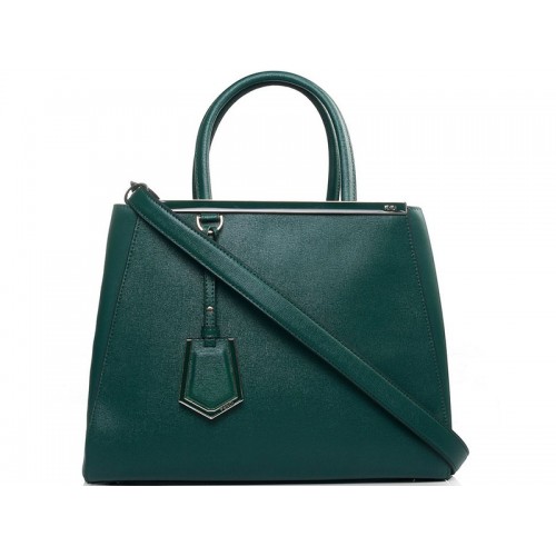 Zöld bőr vásárlótáska a Fenditől, felül nyitott zárással