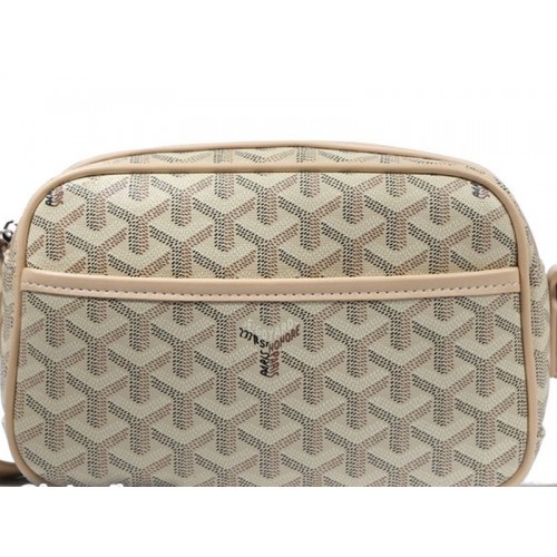 Ez a stílusos deréktáska klasszikus Goyard chevron vászonból készült fehér, barna és fekete színben. A táska állítható bőr derékpánttal rendelkezik ezüst vasalattal, valamint egy szembe néző patch zsebbel, bőr díszítéssel és bőr díszítéssel a felső cipzárnyílás mentén. Az ezüst cipzár citromsárga szövet belső térre nyílik, ahol a mindennapi viselethez szükséges kellékek is helyet kapnak, csak a Goyard hagyományaival és kifinomultságával!