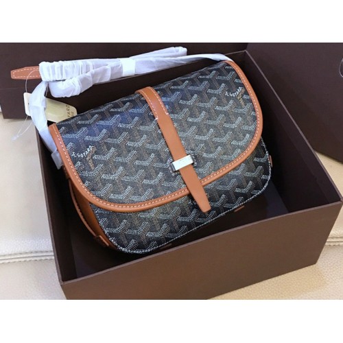 Goyard Goyardine Chevron Messenger táska, fekete, barna bőr szegéllyel