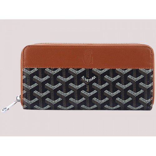 Goyard Goyardine Matignon pénztárca fekete, barna bőr szegéllyel