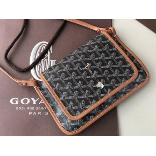 Goyard Goyardine Plumet keresztpántos pénztárca fekete, barna bőr szegéllyel