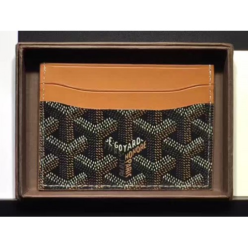 Goyard Goyardine Saint Sulpice kártyatartó fekete színben, barna bőr szegéllyel