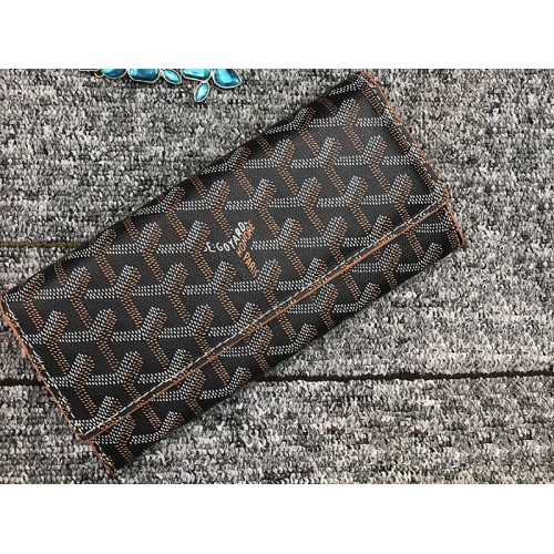 Goyard Varenne Chevron hosszú pénztárca fekete színben, barna bőr díszítéssel