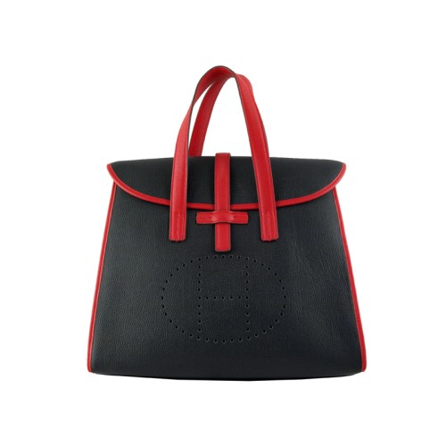 Hermès 08c Zárható Táska Fekete, Piros Bőr Kárpitozással