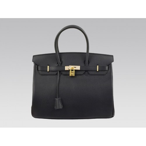 Hermès Birkin 35cm Clemence Táska Fekete Arany Szerelvényekkel