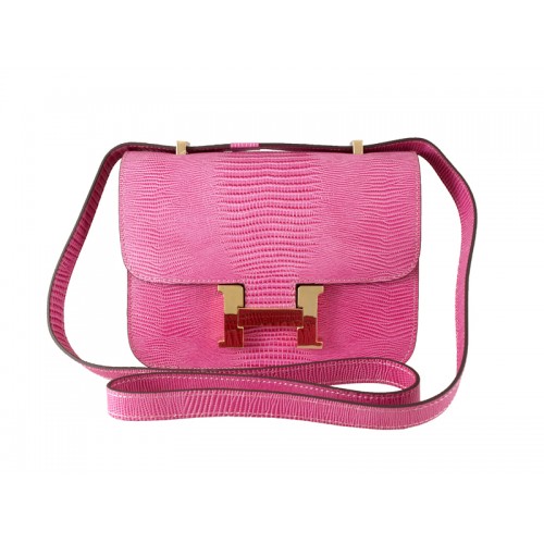 Hermès Constance 23 Egyszemélyes Válltáska Gyíkbőr Rózsaszín