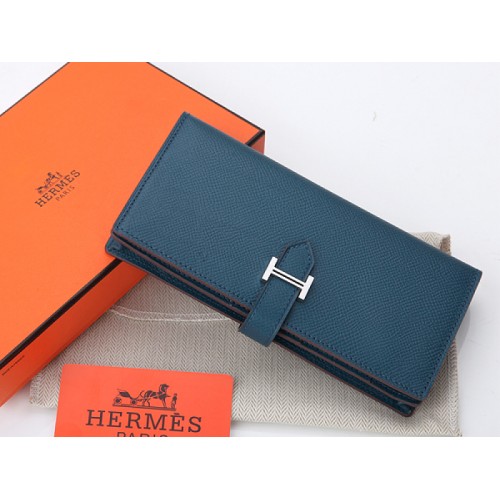 Hermès Epsom Eredeti Borjúbőr Bearn Japán Kétrészes Pénztárca Sötétkék