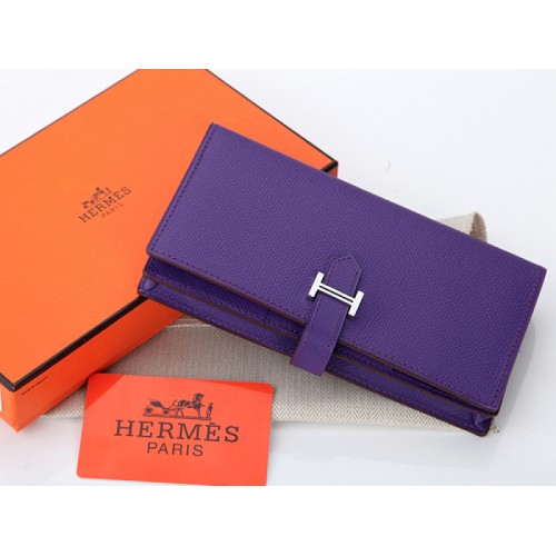 Hermès Epsom Eredeti Borjúbőr Bearn Japán Kétrészes Pénztárca Lila