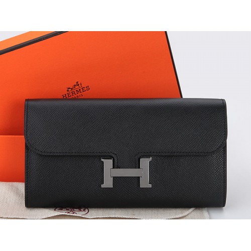Hermes Epsom Eredeti Borjúbőr Constance Hosszú Pénztárca Fekete