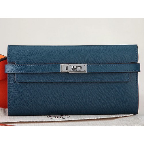 Hermes Epsom Eredeti Borjúbőr Kelly Hosszú Pénztárca Sötétkék