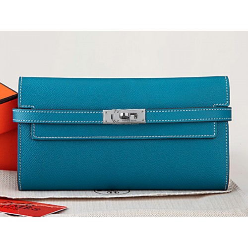 Hermes Epsom Eredeti Borjúbőr Kelly Hosszú Pénztárca Közepes Kék