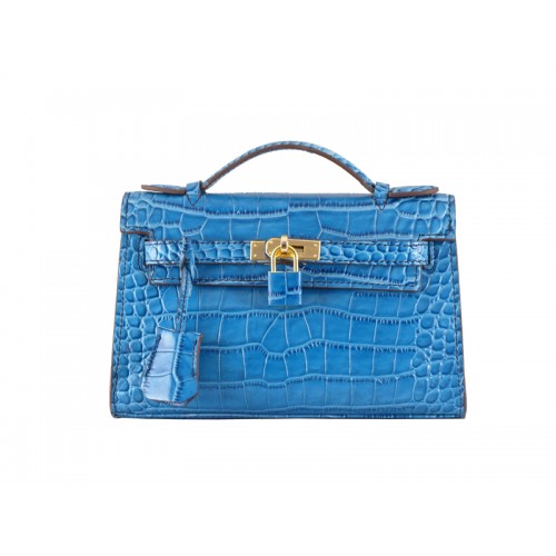 Hermes Matte Kelly Pochette Crocodile Blue Roi