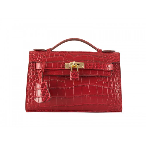 Hermès Matte Kelly Pochette Krokodilpiros
