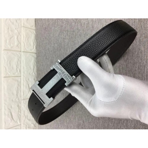 Hermès Ezüst H Övcsat Megfordítható Bőrszíj Fekete
