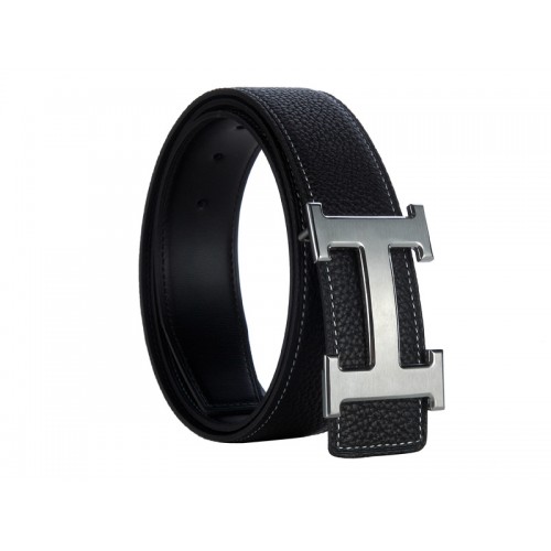 Hermès Togo Bőr Öv Ezüst H Csattal Fekete