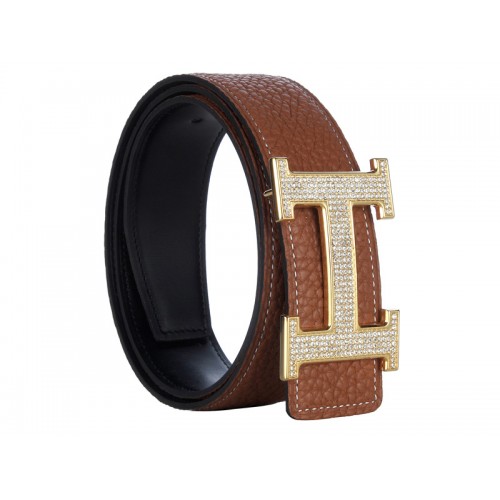 Hermès Togo bőr öv, arany H csattal, barna gyémánt foglalattal.
